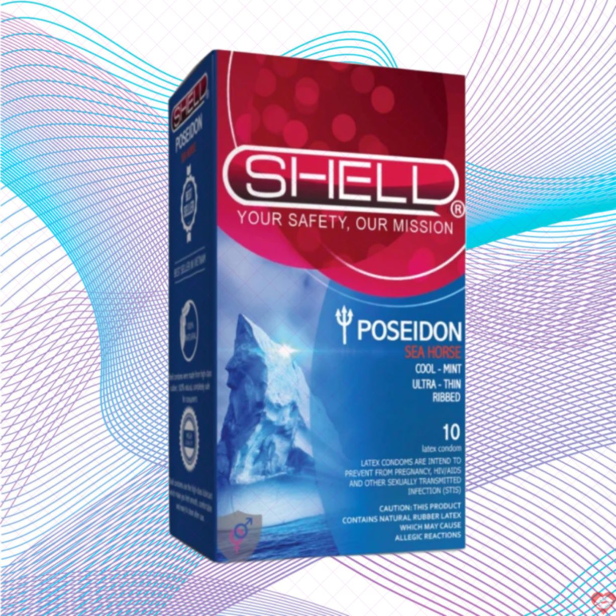 Mô tả:Bao cao su Shell Poseidon || Kéo dài thời gian xuất xứ , Gân gai nhận xét , Mùi bạc hà